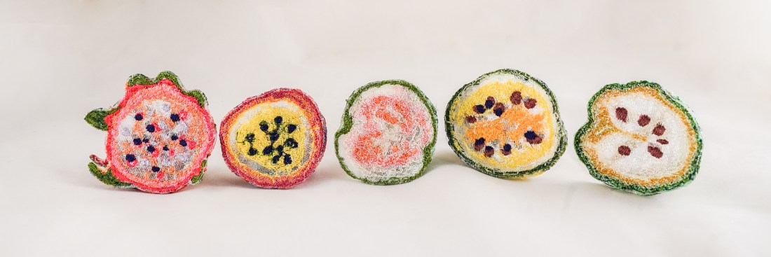 # 親愛果系列胸針 / 繡線、透明布料、別針 / 10 x 8 x 8cm(多個) / 2017 [gallery ids="110,456,457,460,459,454,455,458,453,452" type="rectangular"] [wpvideo o15vzqzC]